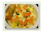 Rice, Prawns, Egg, Onion, Flour, Soy Sauce, Green Onion, Carrots, Cabbages, Broccoli and Canola Oil |