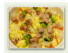 Rice, Pork, Egg, Onion, Flour, Soy Sauce, Green Onion, Carrots, Cabbages, Broccoli and Canola Oil |